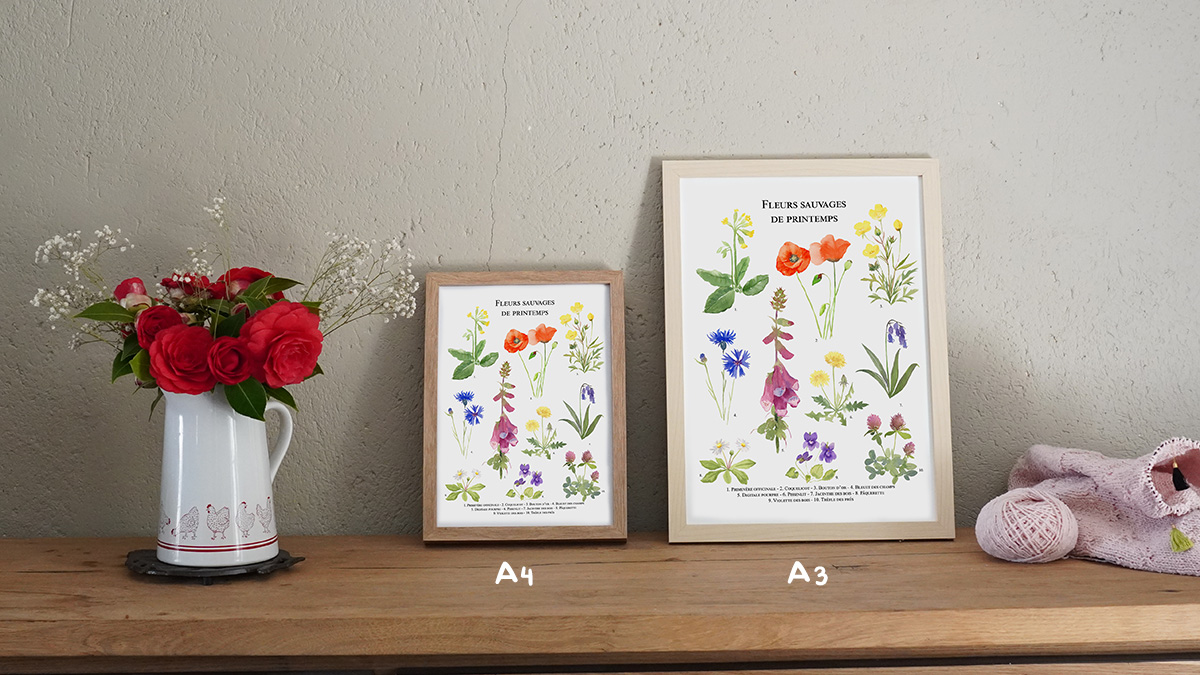 Célébrez la richesse et la délicatesse de la flore printanière avec cette planche naturaliste détaillée. Chaque fleur a été méticuleusement observée et reproduite pour capturer ses couleurs, ses formes et son charme unique, dans un style un peu plus léger qu’une création purement botanique. Comme une brise printanière !